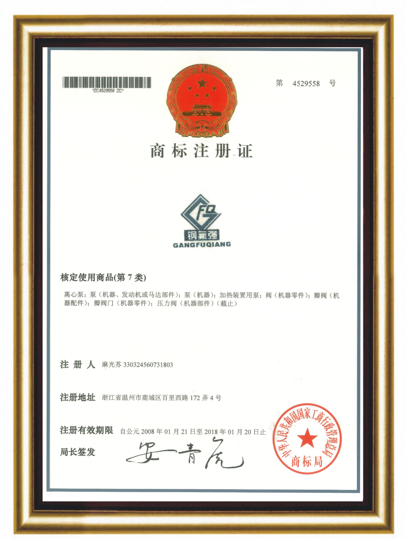| 商標(biāo)注冊(cè)證 |