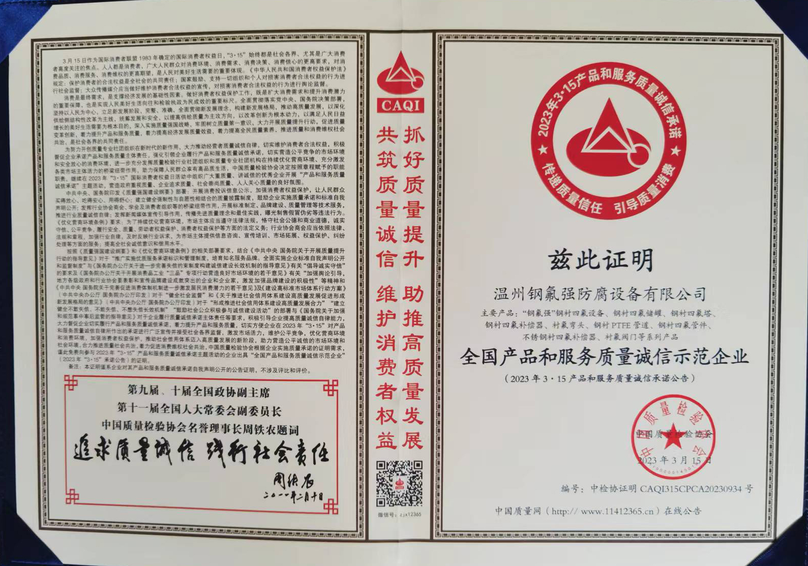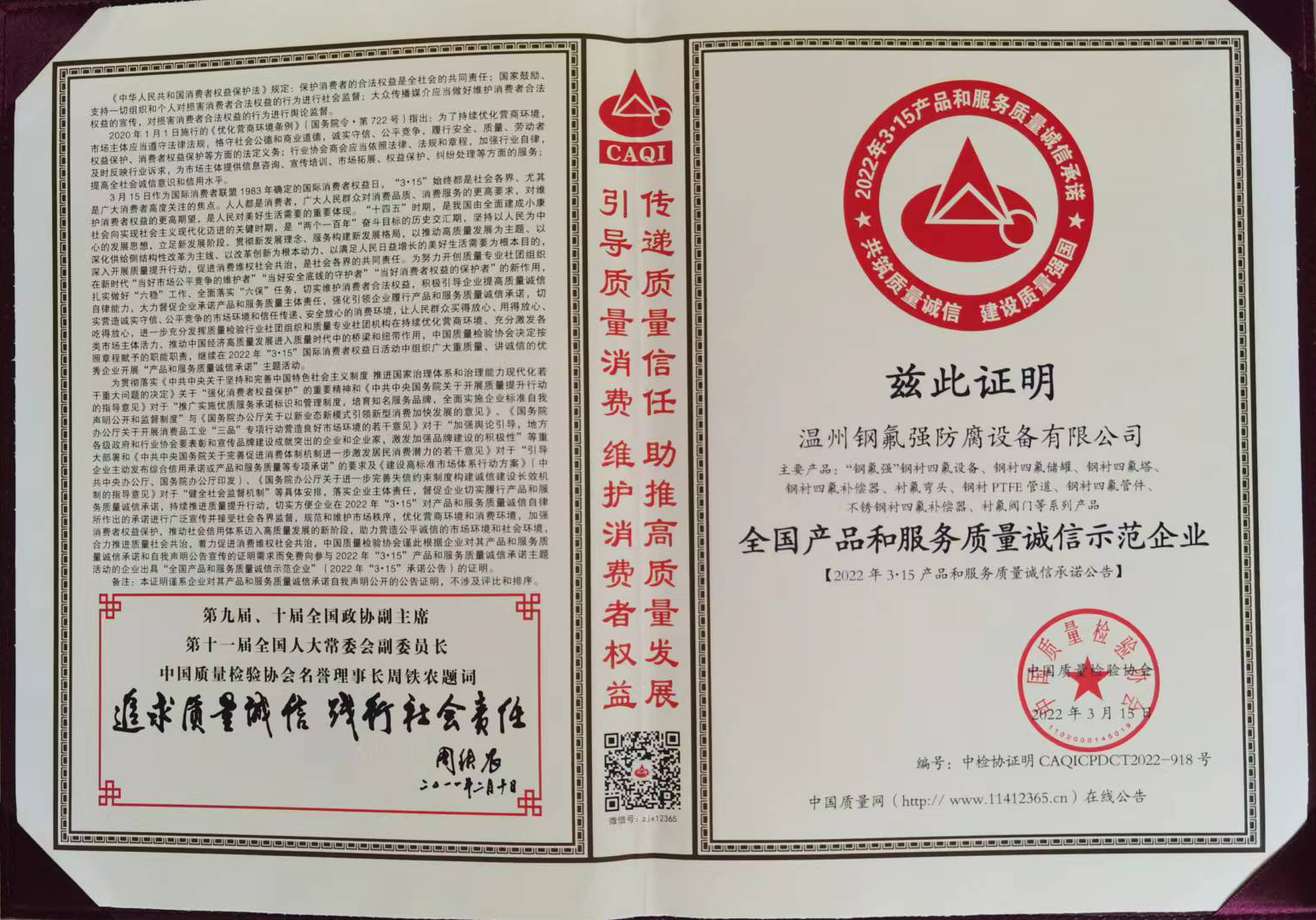 | 全國產(chǎn)品和服務(wù)質(zhì)量誠信示范企業(yè) |